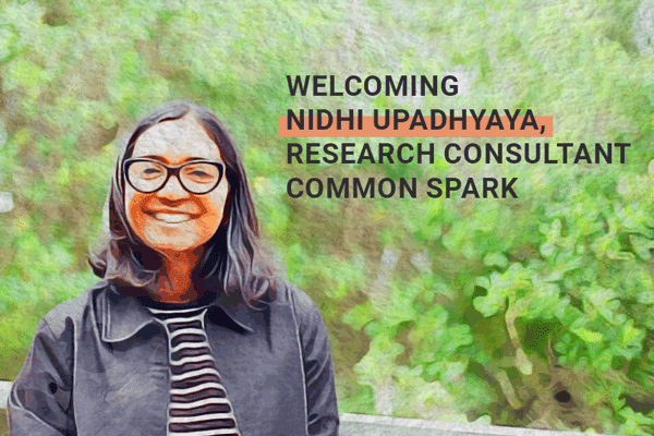 Portrait of Nidhi Upadhyaya with the words “Welcoming Nidhi Upadhyaya, Research Consultant Common Spark" to the right